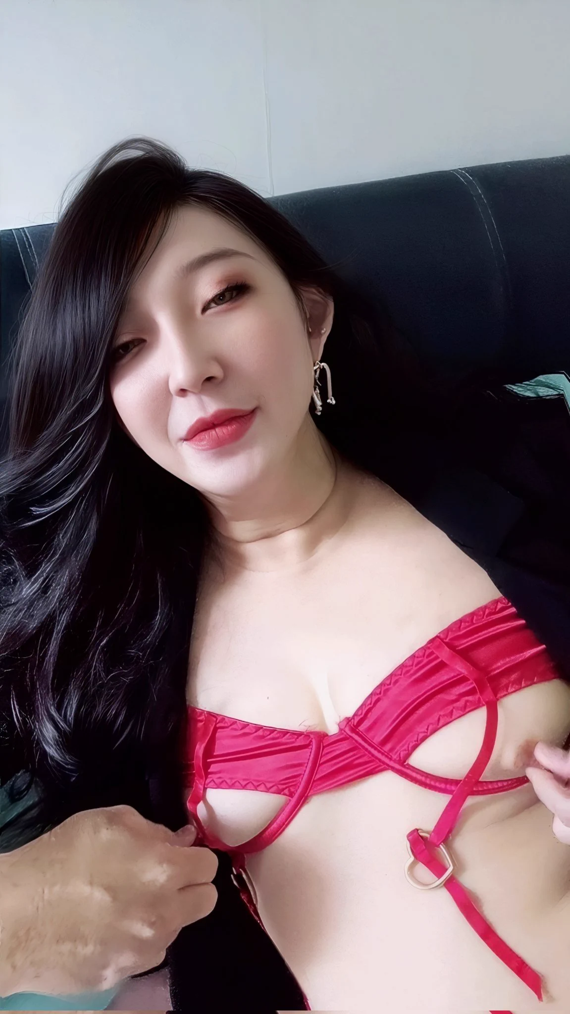 这夫妻2人一人一边捏着我奶头...老公不大但很粗,老婆戴着的假鸡巴就真的有点儿太长了啦😅 有玩过3P应该都懂那种满足的感觉