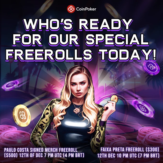 Who’s ready for our Special Freerolls Today! 🌟 Starting at 7 pm UTC (4pm BRT) - Paulo Costa Signed Merch Freeroll ($500) 🥊 Starting at 10 pm UTC (7 pm BRT) - Faixa Preta Freeroll ($300) 🥋 Register now! 🔗