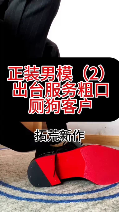 # 男模系列第二部换装来袭!这次男模换上了一身全黑正装来酒店服务客人,调教公狗的粗口越来越成熟,脚下的红底黑皮鞋刷的发亮,踩着客户的狗头疯狂控R,最后将其带到厕所马桶边直接口爆….完整版18min➕q问询💰