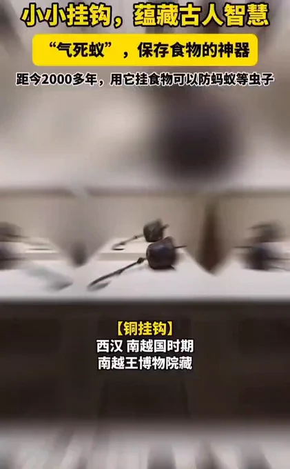 古人用「气死蚁」晒腊肉 “气死蚁”,即“铜挂钩”,是古代岭南先民晾晒食物的神器。 岭南地区气候潮湿炎热,容易滋生虫蚁。 为防止虫蚁偷吃食物,古人用气死蚁晒腊肉。“气死蚁”下方的钩子,用于悬挂食物,上方的铜铃口微外展,内腹中空、可注水。