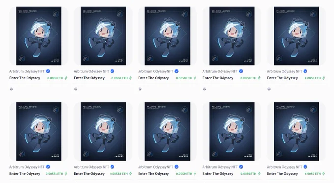 哪里来的这么多大冤种?接近8U一个,这玩意基本上0.5U成本撸两张NFT撸这样30倍了。集齐13张才能领取最终NFT,这样算下来成本110U左右。有这110U你自己去撸5张他不香吗?总量30多万,空投算300U一个账号就1亿U市值,加奥德赛之前的地址算一亿美金流通市值就2亿美金了,还不算其他的。性价比太低了。