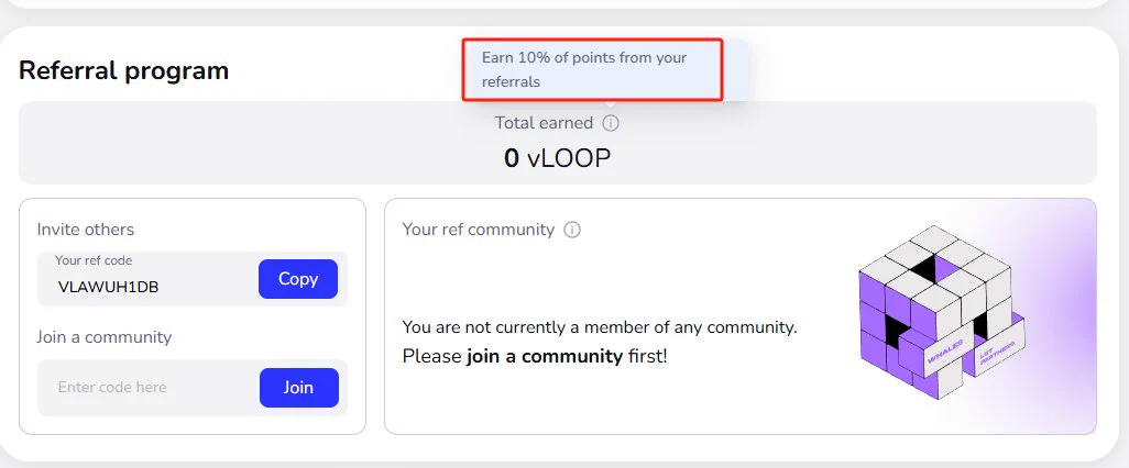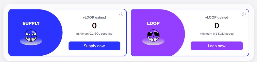 开系统任务了 链接: 任务一共就三大块儿 - 质押供应/借出 最低0.1S。如果是要多号的话,我感觉搞最低就行。如果就单号的话,直接supply闲钱就行 - 社交任务 目前就俩任务。一共是借出1个S,还有链接推特和DC。一共可以拿1400Vloop - 邀请: 这个我建议用自己大号拉自己小号,这样大号可以拿自己小号10%的积分