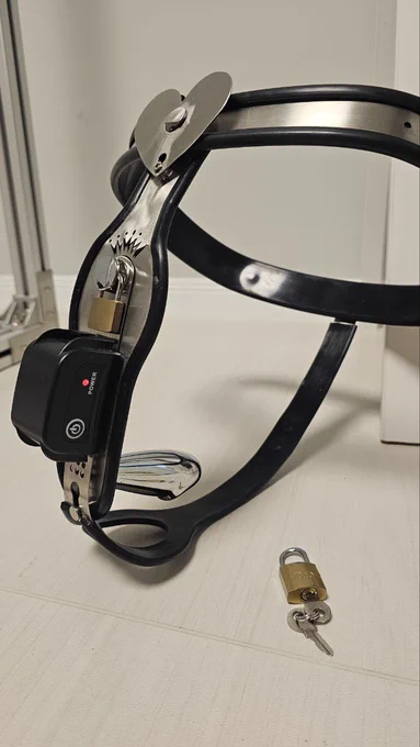 影片裡戴著的是......⚡️電擊金屬陰栓貞操帶 寵物電擊項圈改裝在貞操帶上 放電的兩個小鐵會剛好抵在...脆弱的陰唇上 金屬陽具則是完全插入小穴裡... 對小Q來說...這是徹底的刑具 金屬陽具很硬很不舒服,不同姿勢跟角度也會痛 電擊陰唇更是...試過一次就會完全聽話的疼痛😭