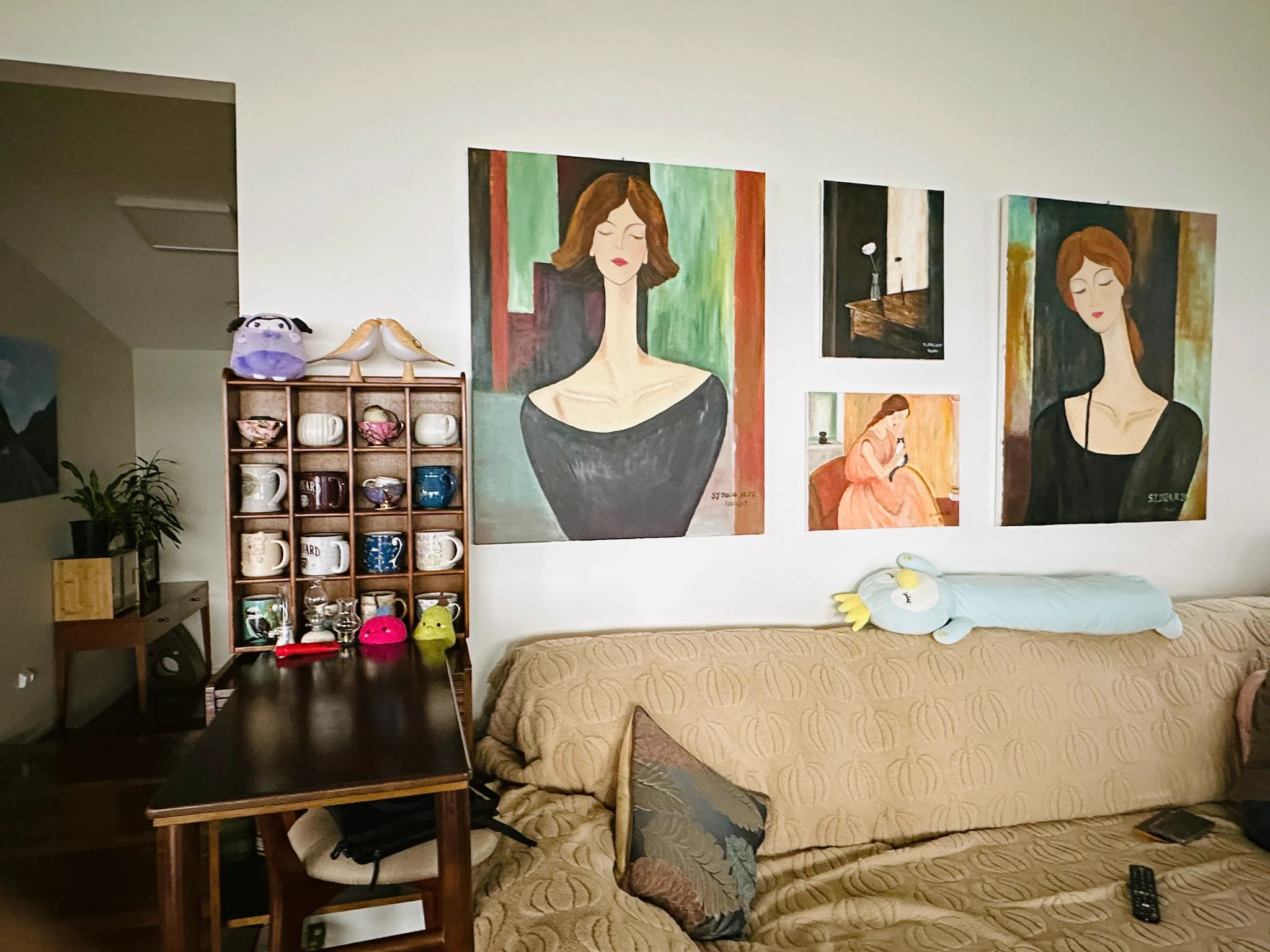 我家每个房间墙上都有我画的画,哈哈。回头要画得满满的。